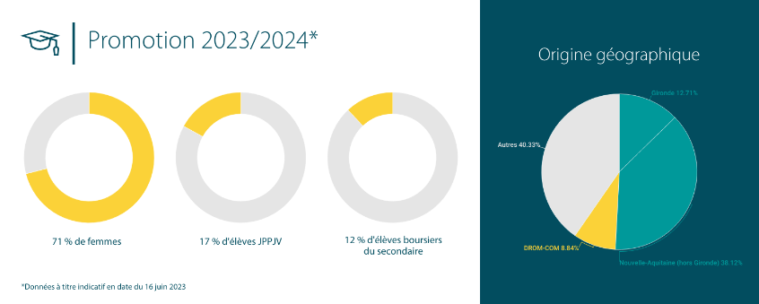 Sciences Po Bordeaux, fidèle à son histoire, reste une école d’excellence pédagogique. Son processus d’admission consiste donc à sélectionner les candidats les plus aptes à suivre notre enseignement selon un processus largement explicité sur notre site, et les plus motivés. Le processus d'admission comprend une phase d’admissibilité puis une phase d’admission. J’insiste pour préciser que tous les élèves sans distinction sont potentiellement « sélectionnables », qu’ils viennent de lycées généraux publics ou privés, de zones urbaines ou rurales. Il n’y a donc aucune exclusion ou discrimination. Dans le même temps, nous développons depuis 20 ans une politique de diversification de notre recrutement, soutenue par la Région Nouvelle-Aquitaine. Celle-ci a donné naissance à notre dispositif Je le Peux Parce que Je le Veux (JPPJV), labellisé Cordée de la réussite et largement connu des proviseur·e·s. La démarche consiste à accompagner les lycées du territoire régional marginalisés sur le plan géographique et social en amont de la phase d’admission. Tout le monde sait que plus un concours est sélectif, plus il est socialement inégal. Notre finalité est notamment de lever les freins souvent psychologiques qui poussent des élèves à s’autocensurer alors même qu’ils disposent du potentiel pour intégrer notre Institut. Ces derniers ne bénéficient en revanche ni de voies ni de places réservées. Ils suivent le même cheminement de sélection et ses exigences que les autres lycéens. Cette cohorte est passée de 20 étudiants en 2016-2017 à 55 élèves en 2022/2023, issus de 50 établissements de notre région.