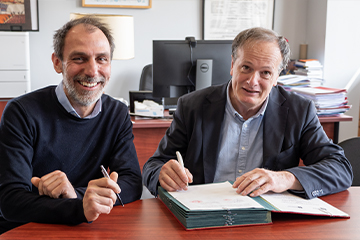 Dans le cadre de la réouverture d'une Filière Intégrée France-Italie (FIFI), Dominique Darbon, directeur de Sciences Po Bordeaux, a signé le vendredi 28 mars 2025 une convention de partenariat avec l’Università di Torino (UNITO), en présence de Giuliano Bobba, professeur associé au département Culture, Politique et Société de l’université de Turin.
